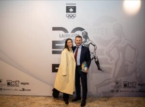 Fotoja është shkrepur pas ndarjes së vlerësimeve të ngjarjes “Laureatet e vitit 2025”, të organizuar nga Komiteti Olimpik i Kosovës dhe Federata e Bjeshkatarisë dhe Ngjitjes Sportive e Kosovës, ku Mrika u nderua për arritjet e saj në alpinizëm.