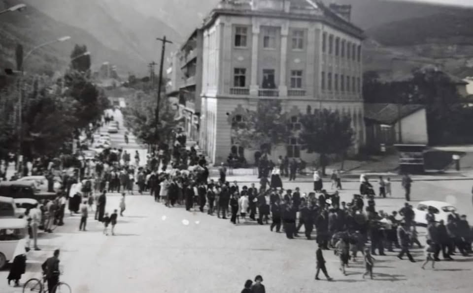 Në një forografi që kemi siguruar nga qytetarja Drita Morina nga Peja, ajo sjell pamje nga dita e saj e martesës në vitin 1966, ku shihen krushqit duke parakaluar në këmbë në sheshin e qytetit.