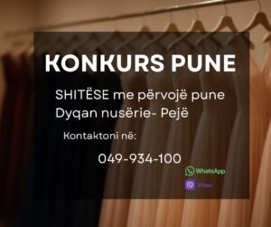 Një dyqan nusërie në Pejë ka hapur konkurs për punësim dhe ofron mundësi pune për shitëse me përvojë pune.