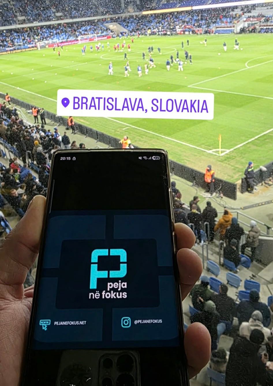 Nga Bratisllava, gjatë ndeshjes, shikuesit kanë dërguar pamje duke mbajtur “Peja në Fokus”, e dërguar nga qytetari Arben Daci, duke dëshmuar se portali ndiqet kudo./Pejanefokus.net/Sport.