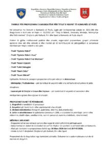 Drejtoria e Kulturës, Rinisë dhe Sportit në Komunën e Pejës, sikurse zakonisht ka hapur thirrjen për ndarjen e titujve të nderit, .