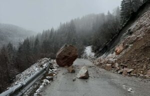 Rruga Pejë–Rugovë është bllokuar gjatë natës si pasojë e rrëshqitjes së gurëve, duke paraqitur rrezik për qarkullimin.