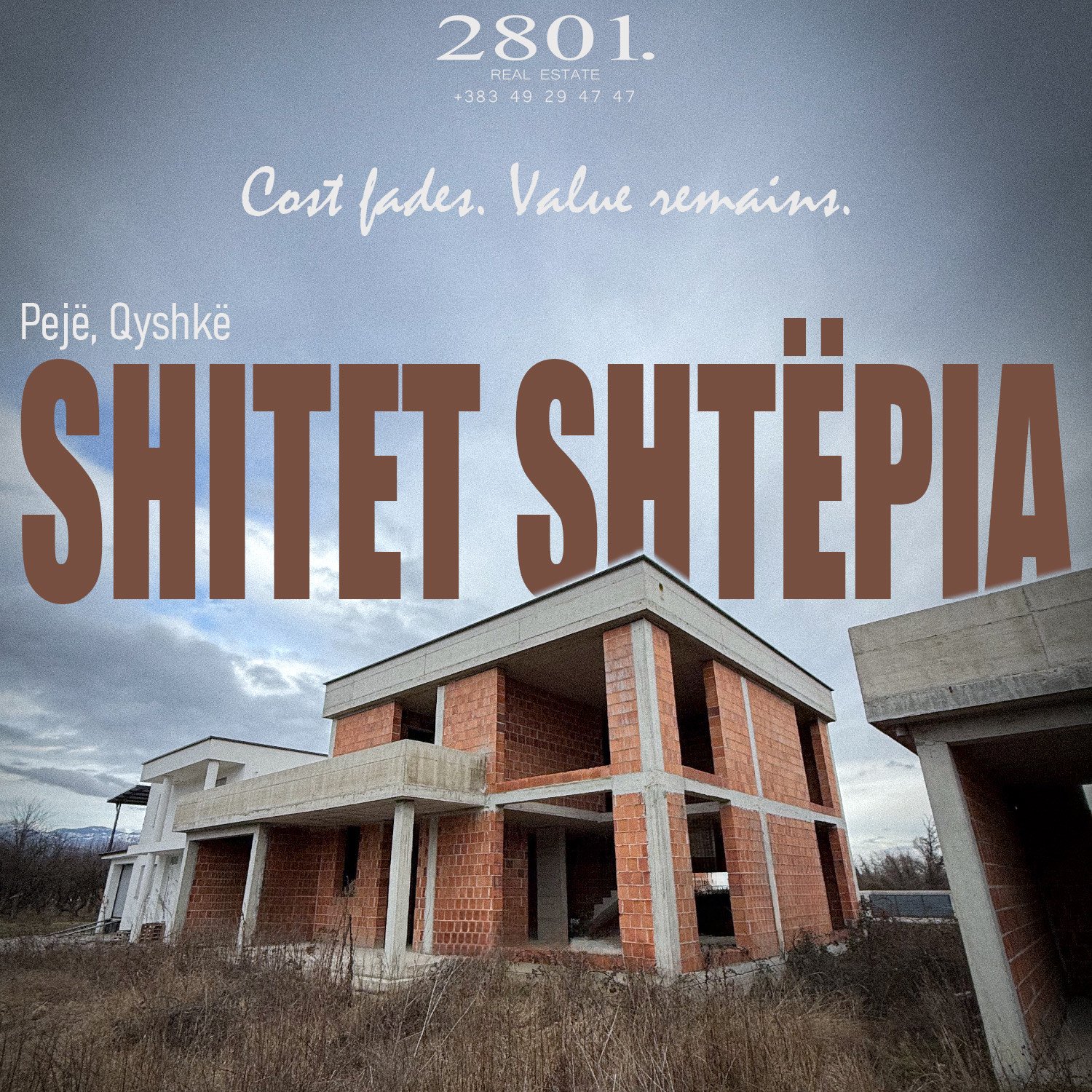 Agjencia 2801 Real Estate ofron për shitje një shtëpi 2-katëshe në një lokacion shumë të përshtatshëm në Qyshk të Pejës, Lagjja Drini, vetëm 200 metra larg magjistrales Pejë–Klinë.