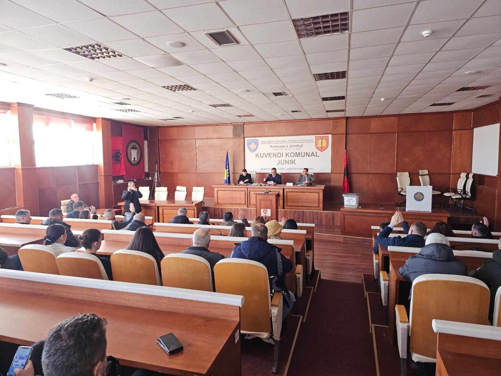 Është mbajtur mbledhja e Kuvendit Komunal të Junikut, ku pikë e rendit të ditës ishte zgjedhja e Kryesuesit të Kuvendit Komunal, me këtë rast, grupi i asambleistëve të LDK-së propozoi për këtë pozitë Shpejtim Gacaferin, ndërsa grupi i asambleistëve të AAK-së propozoi Leonard Llollunin.
